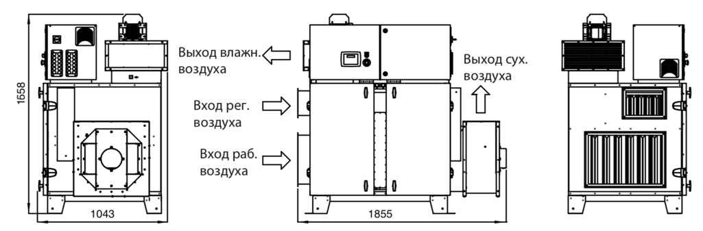 - Производительность осушения: 34 кг/ч (при 20 °C)